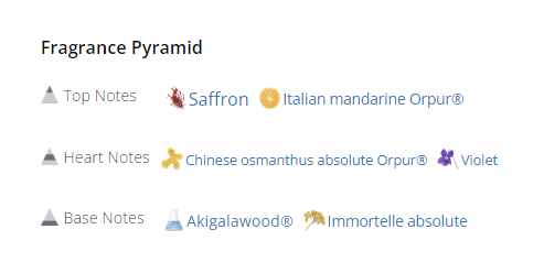 | رایحه پایدار | گل ایمورتال(یک مولکول مصنوعی که یاد آور نعنای هندی با کمی فلفل و آگارد وود است Akigalawood) |