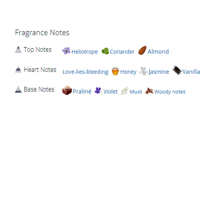 | رایحه پایدار | بنفشه, پرالین, روایح چوبی, مشک |