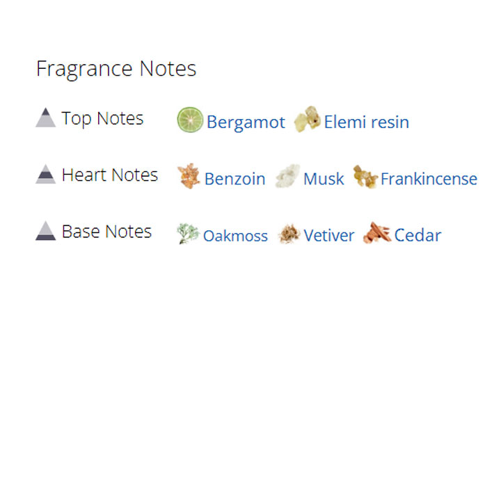 نت آغازی: ترنج و سنجد. قلب: بنزوئین، بخور و مشک. پایه: خزه بلوط، سدر و وتیور.