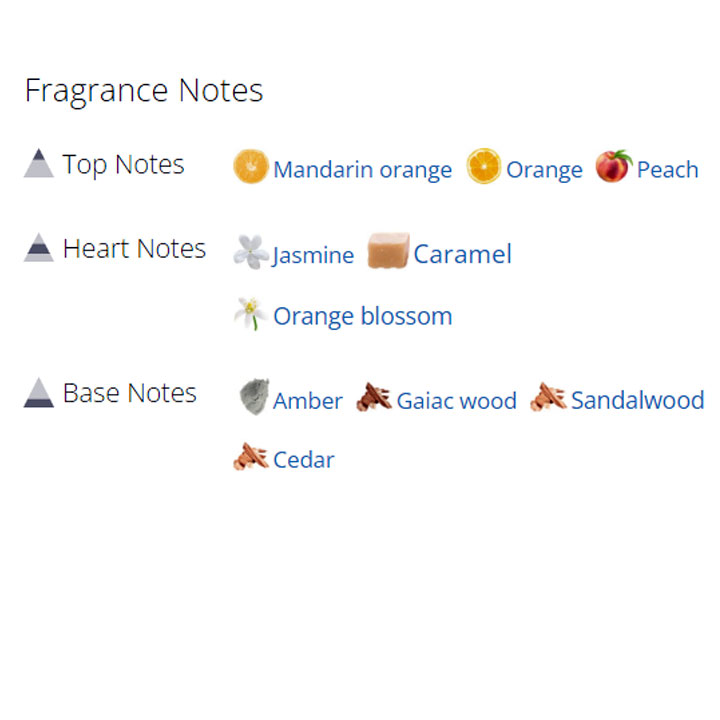 این عطر در یک بطری صورتی به شکل یک آب نبات پیچیده می آید. ترکیب آن توسط سیسیل ماتون و سرژ ماژولیه امضا شده است. نت کلیدی کارامل است که در بالای آن رایحه های ماندارین، پرتقال و هلو احاطه شده است. گل های شکوفه پرتقال و یاس در قلب؛ و در پایه چوب سدر، چوب گایاک، چوب صندل و کهربا.