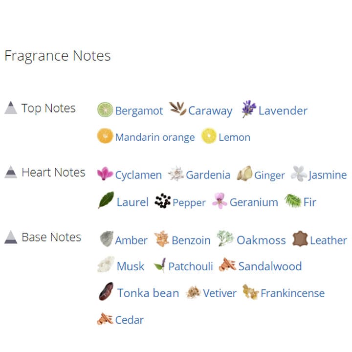 | رایحه پایدار | چرم, چوب صندل سفید, خزه درخت بلوط, خس خس, دانه تونکا, روایح دودی, سدر, کهربا, لوبان, مشک, نعناع هندی |