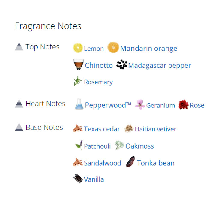 | رایحه پایدار | چوب صندل سفید, خزه درخت بلوط, خس خس, دانه تونکا, نعناع هندی, وانیل |