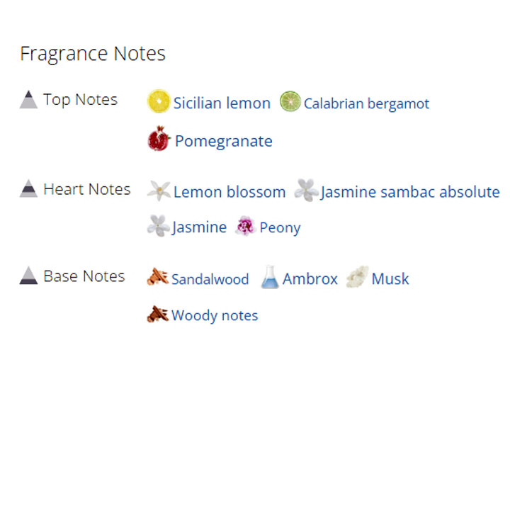 نتهای ابتدایی این عطر شامل لیمو سیسیلی، انار و ترنج کالابریا هستند که لحظهای سرشار از انرژی، تازگی و طراوت مرکباتی ایجاد میکنند. این آغاز جذاب باعث میشود شما و اطرافیانتان از همان لحظه اول حس شادابی و نشاط را تجربه کنید.