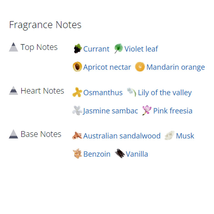 برچسب ها: انگور فرنگی, برگ بنفشه, چوب صندل سفید, خامه, زردآلو, لوبان, مشک, نارنگی ماندارین, وانیل