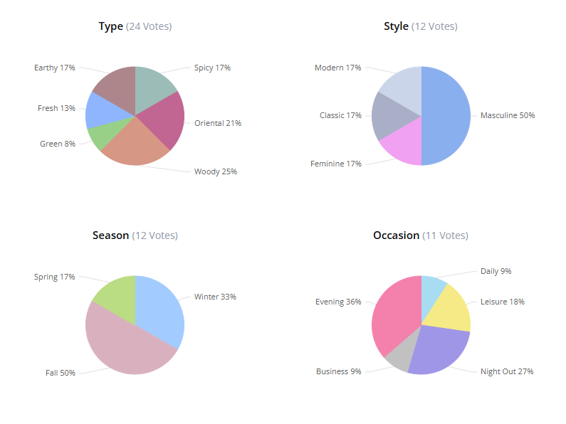 | رایحه پایدار | چوب صندل, چوب گایاک, خس خس, سرو, لوبیای تونکا, مشک, نعناع هندی |
