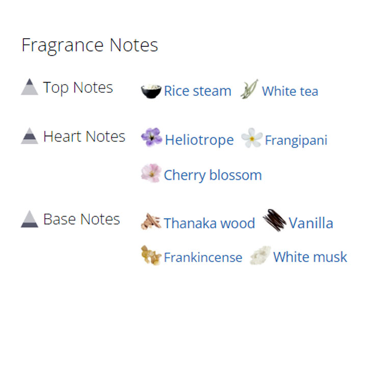 برچسب ها: بخار برنج, چای سفید, چوب تاناکا, شکوفه گیلاس, کندر, گل آفتاب پرست, مشک سفید, وانیل, یاسمن سفید
