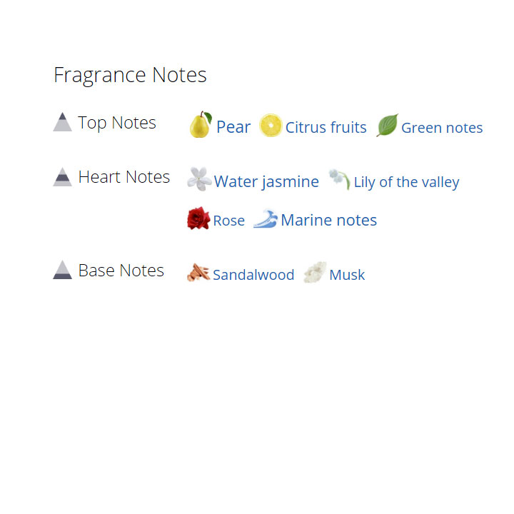 برچسب ها: چوب صندل, رز, گل برف, گلابی, مرکبات, مشک, نت های دریایی, نت های سبز, یاس رودخانه