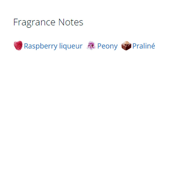این ترکیب به عنوان یک گل میوه ای آبدار و تحریک کننده اعلام شده است. ترکیبات برجسته شامل لیکور تمشک در بالا، گل صد تومانی سیاه در قلب و پرالین شیرین در پایه است. این بطری از شیشه حکاکی شده ساخته شده است که با یک پاپیون ساتن مشکی و یک دستگاه اتمایزر تزئین شده است.