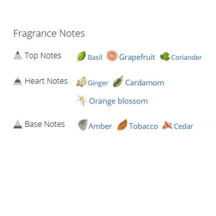 برچسب ها: تنباکو, چوب سدر, ریحان, زنجبیل, شکوفه پرتقال, کهربا, گریپ فروت, هل