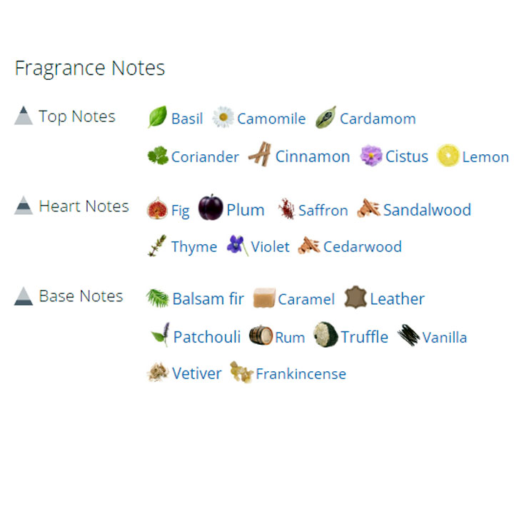 | رایحه پایدار | ترافل, چرم, خس خس, صمغ کندر, صنوبر, کارامل, مشروب, نعناع هندی, وانیل |