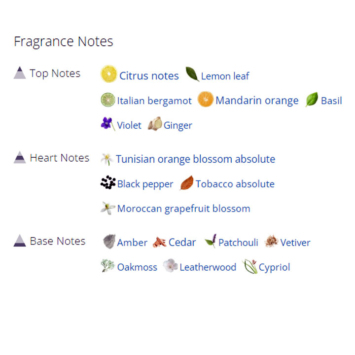 برچسب ها: برگ لیمو, بنفشه, ترنج, ترنج، نارنگی ماندارین، لیمو ترش، ریحان, چرم, خزه درخت بلوط, خس خس, ریحان, زنجبیل, سدر, شکوفه پرتقال, شکوفه گریپ فروت, فلفل, کهربا, کیپریول, لیمو ترش, نارنگی ماندارین