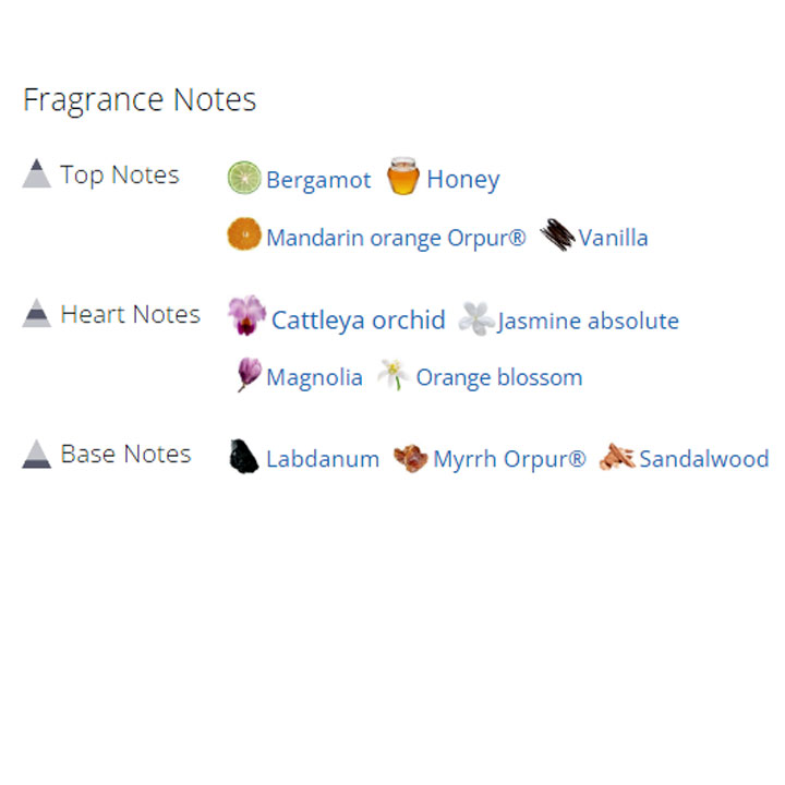 نتهای میانی: ارکیده سیاه، ارکیده، یاس، هلیوتروپ، سنبل، روغن رز، نرگس، مگنولیا و شکوفه پرتقال