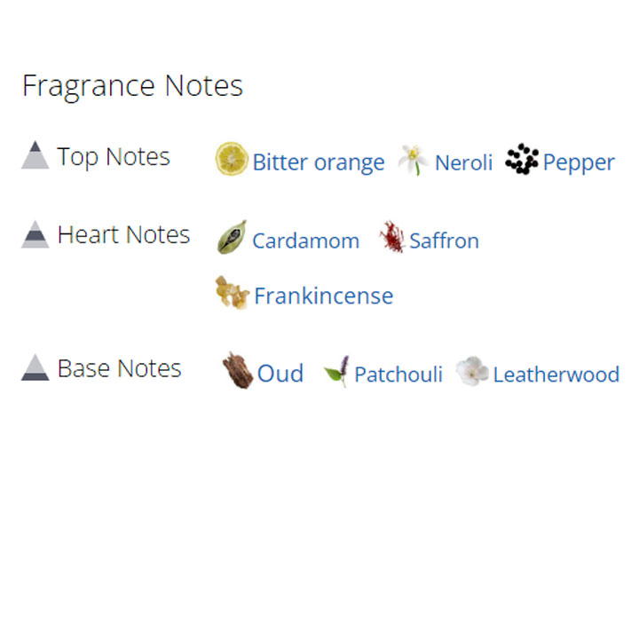 برچسب ها: چرم, روایح چوبی, زعفران, شکوفه پرتقال, صمغ کندر, عود, فلفل, نارنج, نعناع هندی, هل