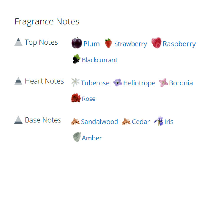 | رایحه میانی | چوب صندل سفید, رز, گل برف, گل مریم, یاس |